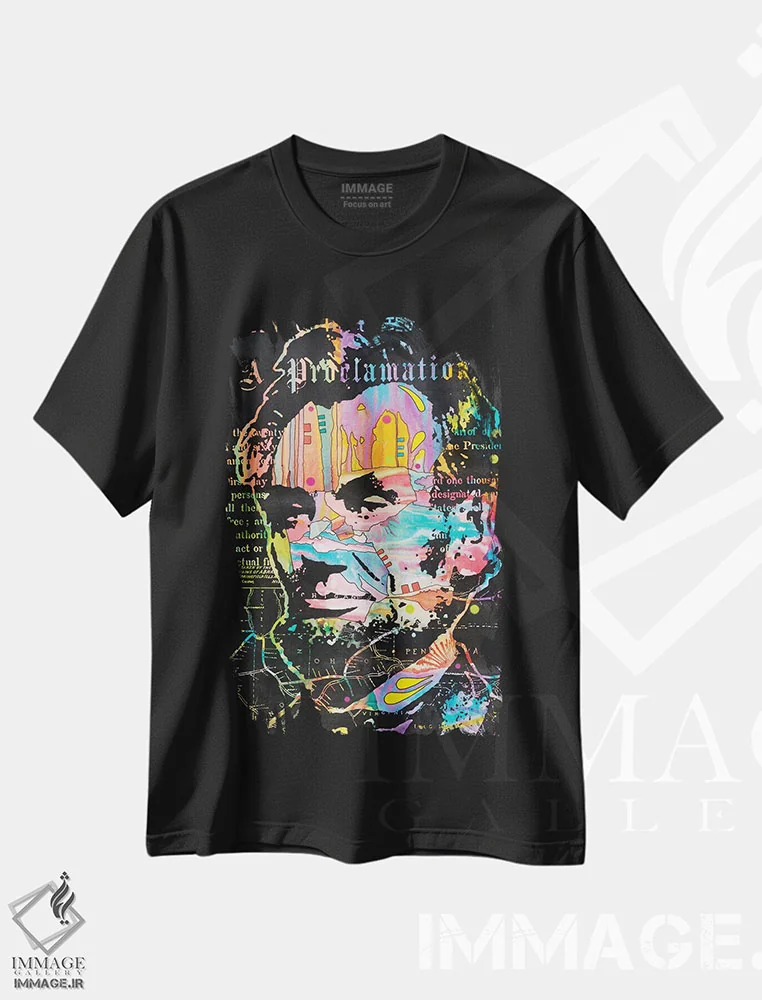 تیشرت مشکی طرح دار اعلامیه آبراهام، مدیوم اثر دین روسو | فروشگاه ایماژ