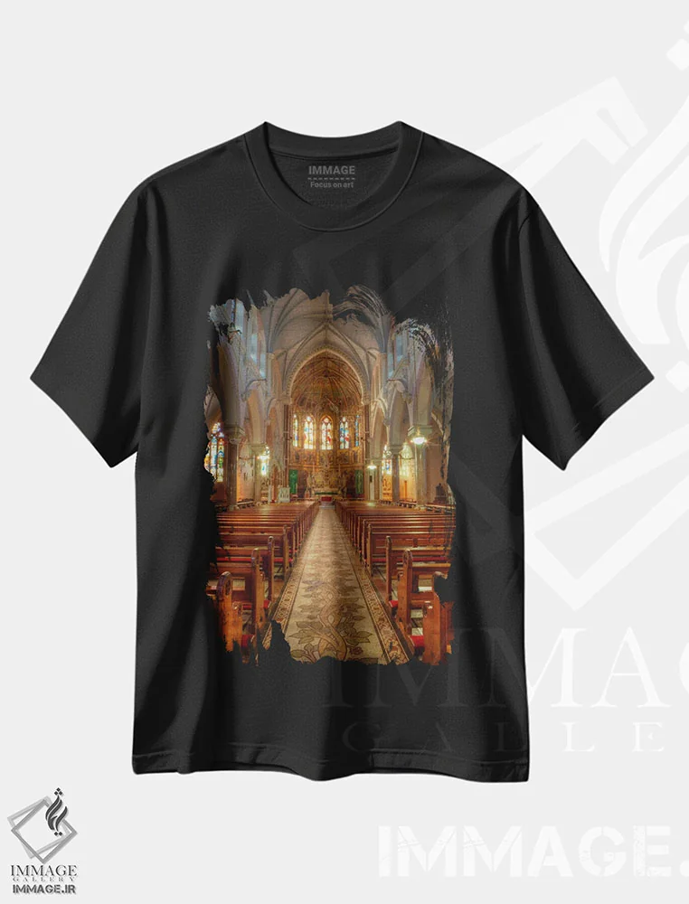 تیشرت مشکی طرح دار داخل کلیسای جامع شماره ۳، مدیوم اثر گلاوکو منهالی | فروشگاه ایماژ تیشرت طرح دار داخل کلیسای جامع شماره اثر گلاوکو منهالی