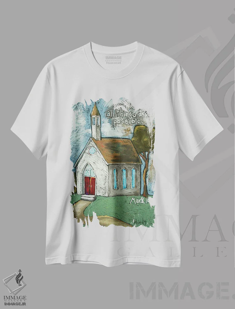 تیشرت سفید طرح دار کلیسای کوچک ابتدایی، تزئینی اثر دیویدای هینْدز | فروشگاه ایماژ تیشرت طرح دار کلیسای کوچک ابتدایی اثر دیویدای هینْدز