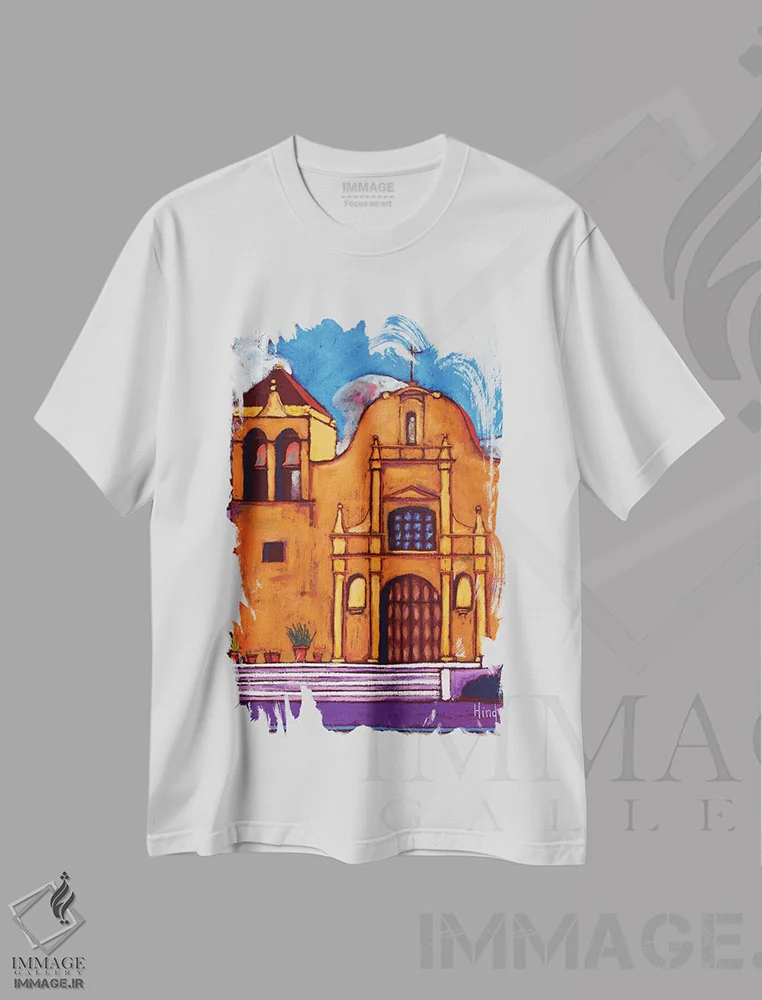 تیشرت سفید طرح دار کلیسای جامع سن کارلوس، تزئینی اثر دیویدای هینْدز | فروشگاه ایماژ تیشرت طرح دار کلیسای جامع سن کارلوس اثر دیویدای هینْدز