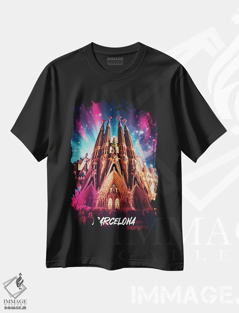 تیشرت مشکی طرح دار ساگرادا بارسلونا، مدیوم اثر کاترینا بورتسووا | فروشگاه ایماژ تیشرت طرح دار ساگرادا بارسلونا اثر کاترینا بورتسووا