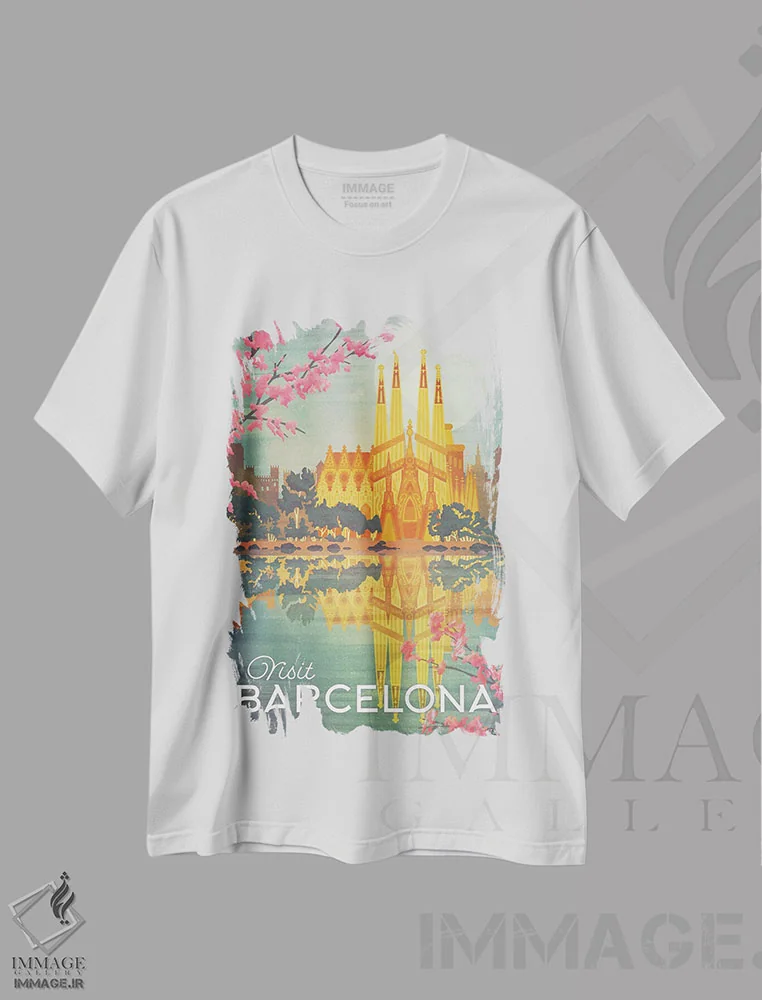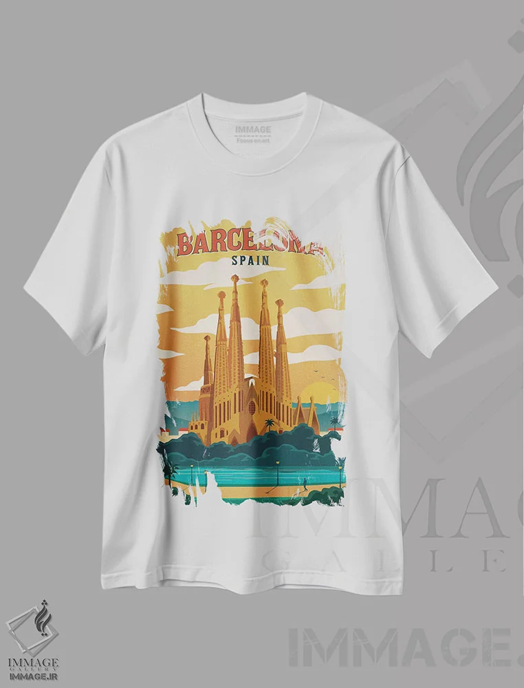 تیشرت سفید طرح دار اسپانیا-بارسلونا، هنر دیجیتال اثر میسی ایمز | فروشگاه ایماژ تیشرت طرح دار اسپانیا-بارسلونا اثر میسی ایمز