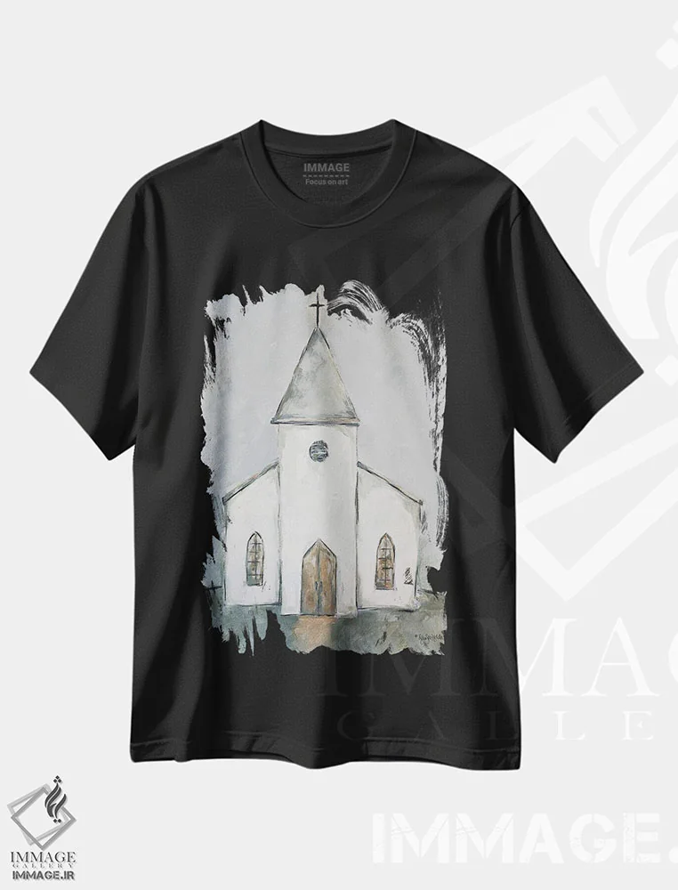 تیشرت سفید طرح دار داخل کلیسا، مدیوم اثر گلاوکو منهالی | فروشگاه ایماژ تیشرت طرح دار داخل کلیسا اثر گلاوکو منهالی