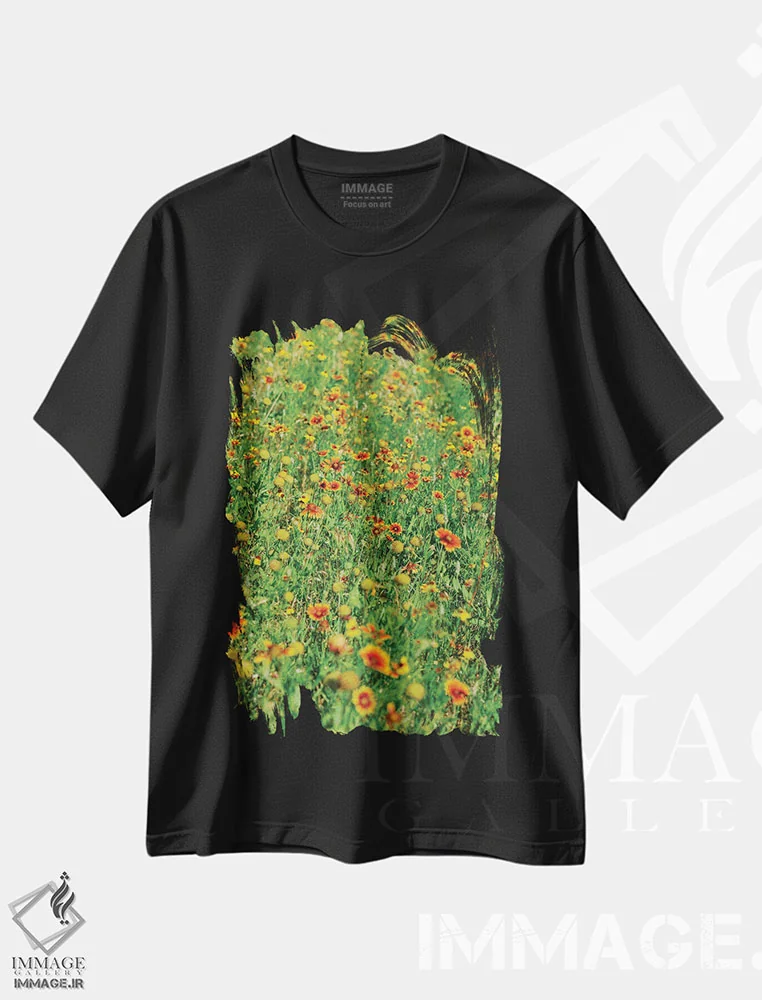تیشرت مشکی طرح دار باغ سوسن روز ۴، مدیوم اثر بثانی یانگ | فروشگاه ایماژ