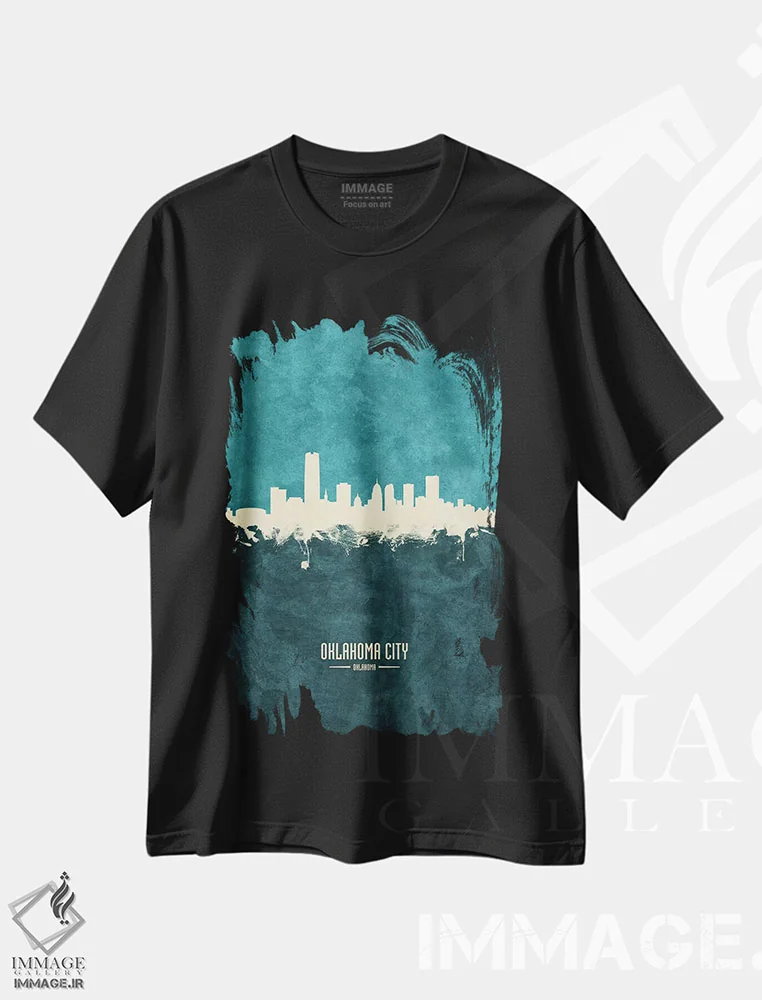 تیشرت مشکی طرح دار مرکز شهر اوکلاهما سیتی، مدیوم اثر بثانی یانگ | فروشگاه ایماژ