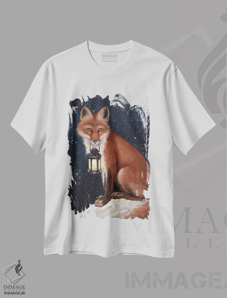 تیشرت سفید طرح دار روباه و فانوس، تزئینی اثر کایرا ویلسون | فروشگاه ایماژ
