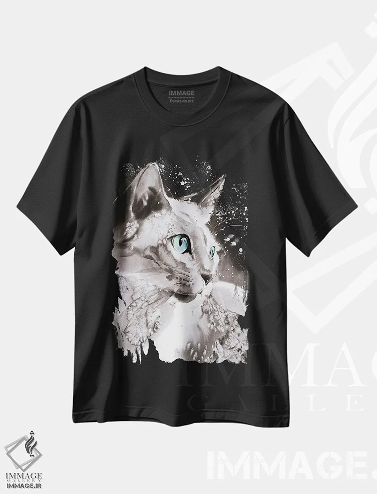 تیشرت مشکی طرح دار گربه باحال، دکور معاصر اثر سو بنگ لیم | فروشگاه ایماژ