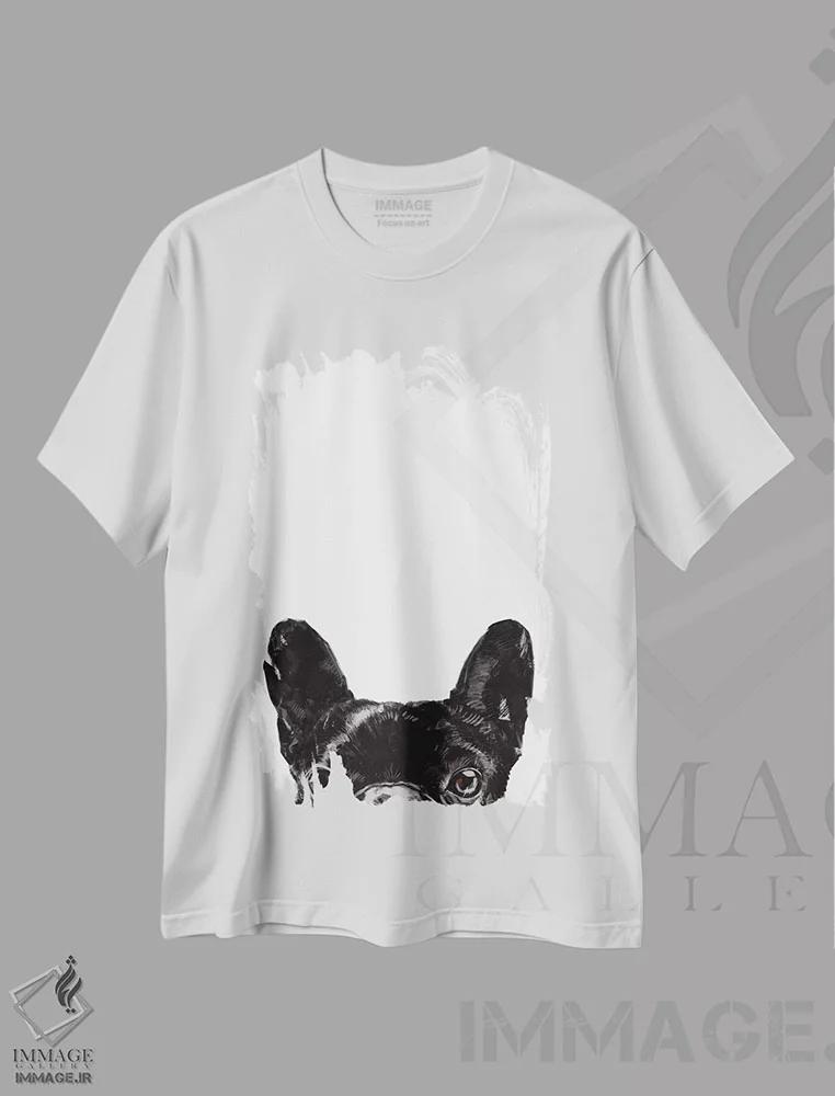 تیشرت سفید طرح دار فرنچ بولداگ سیاه و سفید، تزئینی اثر دنی گوردون | فروشگاه ایماژ