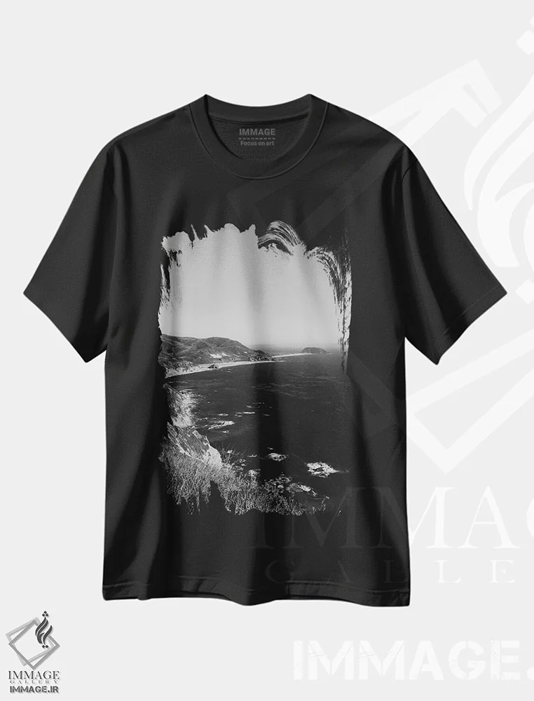 تیشرت مشکی طرح دار بیگ سور سه، عکاسی سیاه و سفید اثر بثانی یانگ | فروشگاه ایماژ