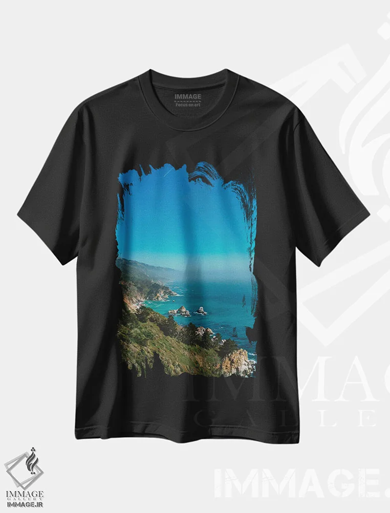 تیشرت مشکی طرح دار بیگ سور، کالیفرنیا دو، عکاسی سیاه و سفید اثر بثانی یانگ | فروشگاه ایماژ