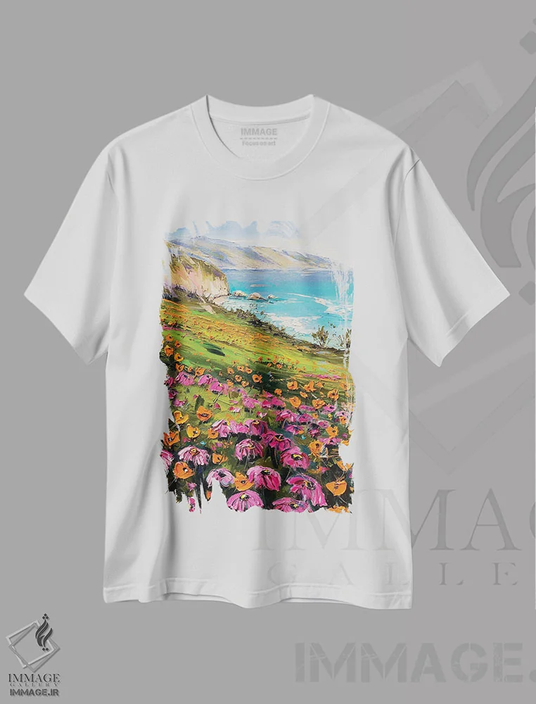 تیشرت طرح دار شکوفه های وحشی کنار پل بیگس بی، ساحل بیگ سور، کالیفرنیا اثر جورج اوزه