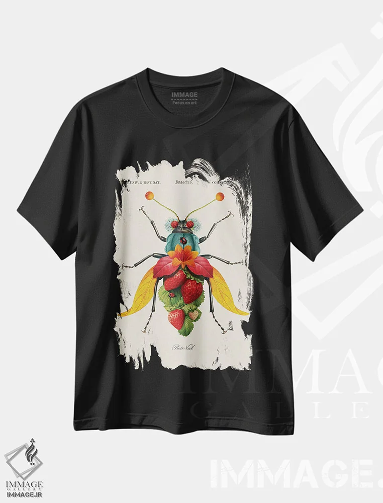 تیشرت مشکی طرح دار حشره توت فرنگی، دکوراسیون جایگزین اثر بتو وال | فروشگاه ایماژ