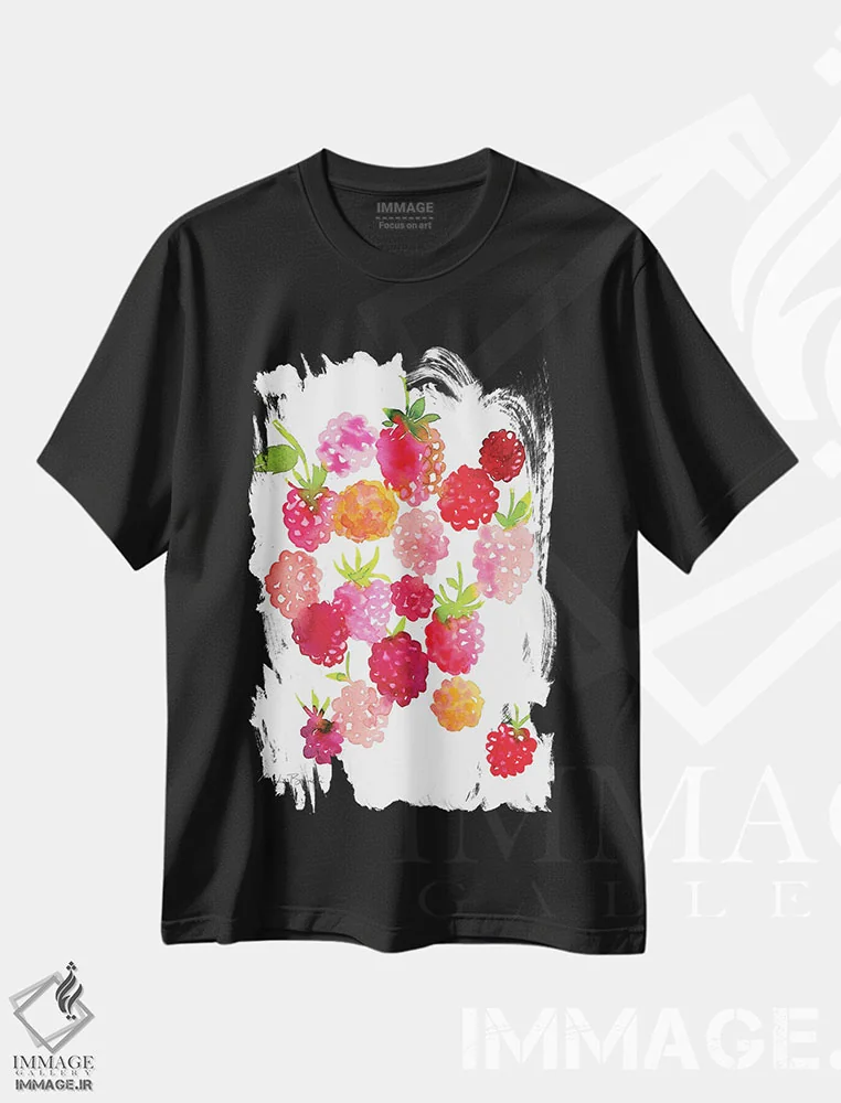 تیشرت مشکی طرح دار بهشت تمشک ها، هنر فاخر معاصر اثر لیمُو | فروشگاه ایماژ