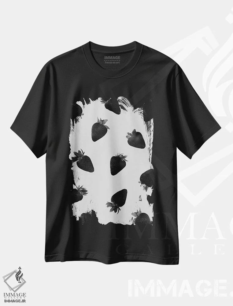 تیشرت مشکی طرح دار توت فرنگی، دکور معاصر اثر ناتالی مک | فروشگاه ایماژ