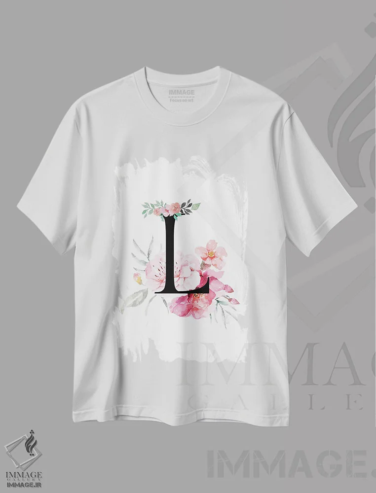 تیشرت طرح دار حرف L با گل های آبرنگی اثر پیج ترنر