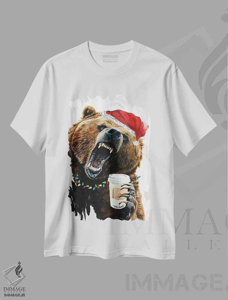 تیشرت سفید طرح دار صبح های گریزلی کریسمس، حیوانات کریسمسی اثر هالی سیمنتال | فروشگاه ایماژ تیشرت طرح دار صبح های گریزلی کریسمس اثر هالی سیمنتال