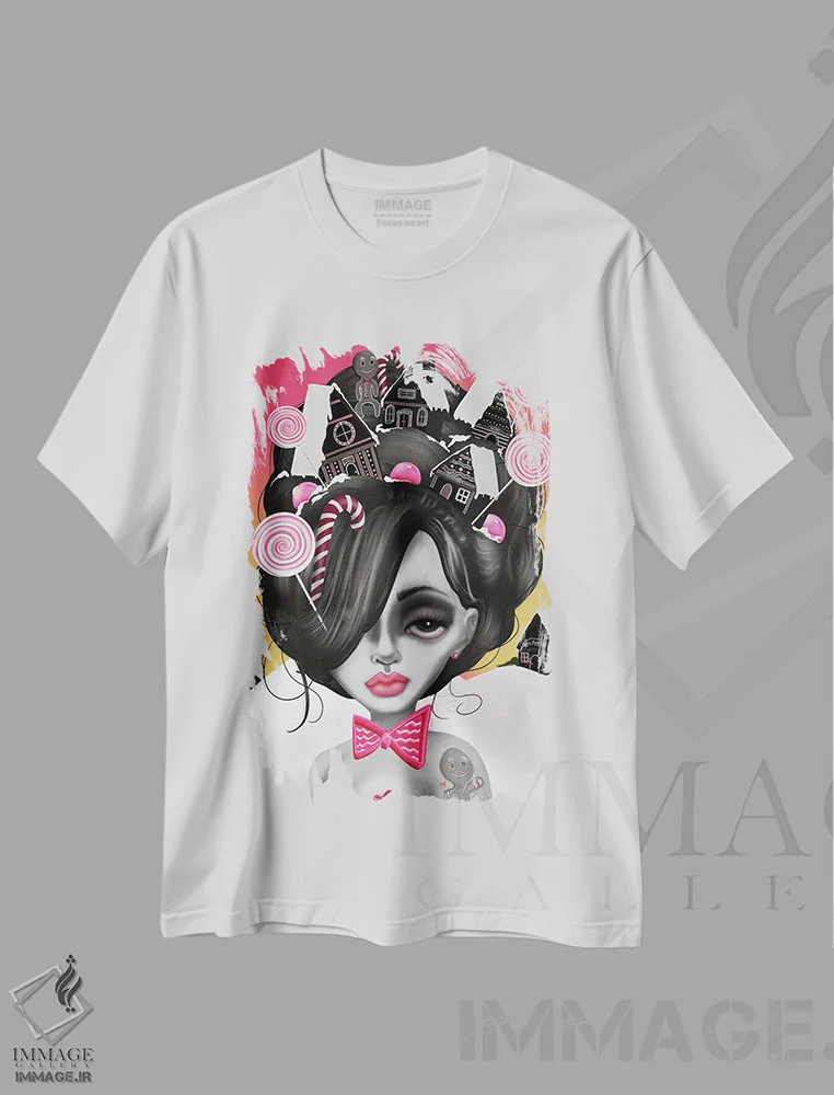 تیشرت سفید طرح دار – تیشرت هنری ,خوراکی شیرین اثر لیزی فالکون فروشگاه ایماژ تیشرت طرح هنری ,خوراکی شیرین اثر لیزی فالکون