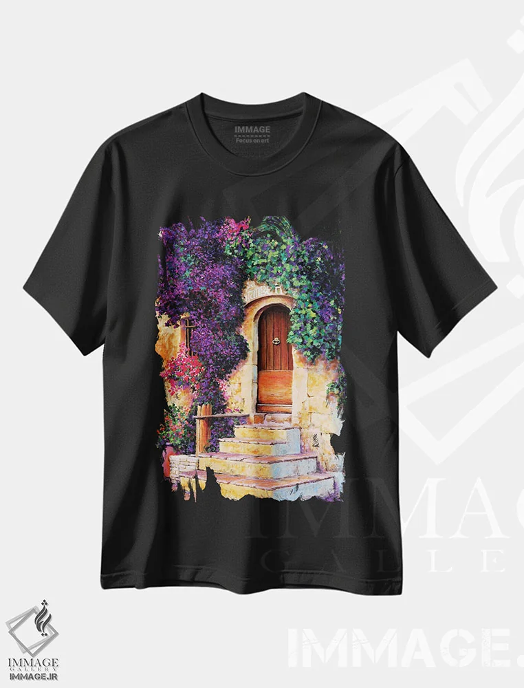 تیشرت مشکی طرح دار درب قدیمی در رم، مدیوم اثر هنریکه شنک | فروشگاه ایماژ