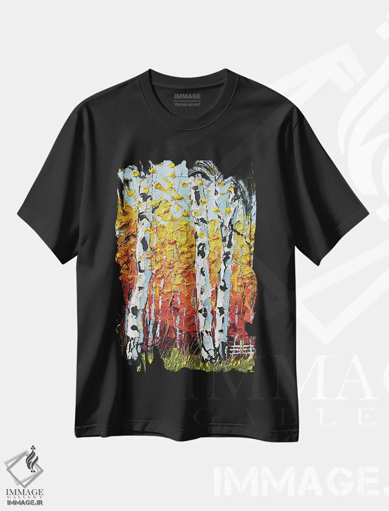 تیشرت طرح دار درختان توس طلایی پاییزی اثر لیزا الی