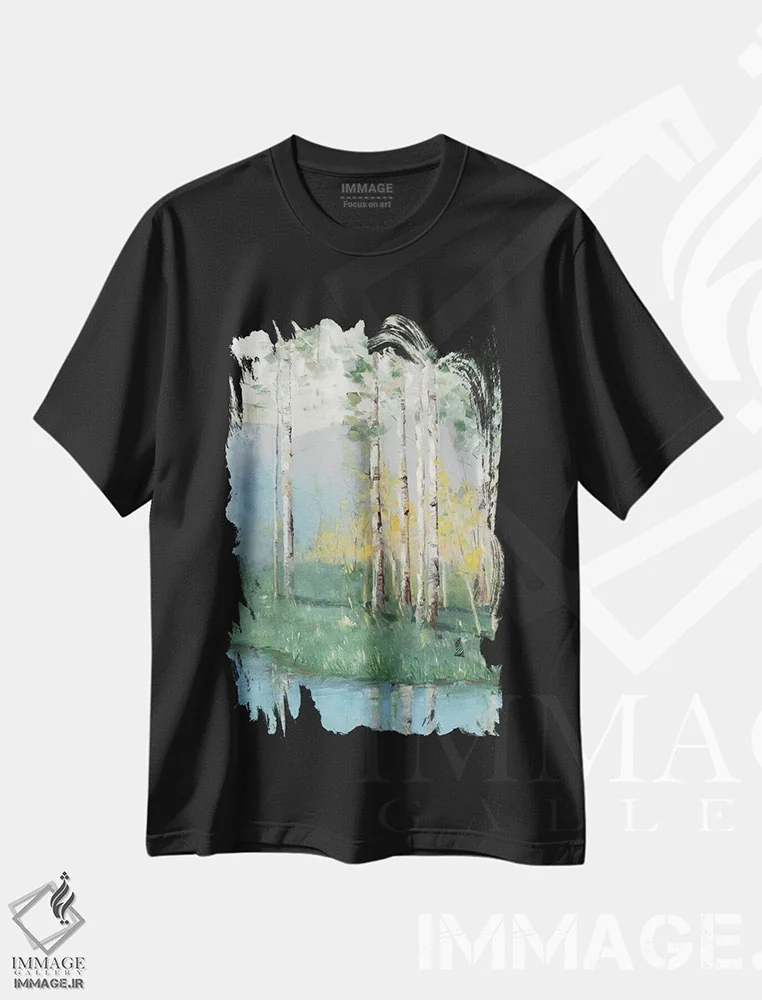 تیشرت مشکی طرح دار – تیشرت طبیعت ,جنگل توس اثر مارگاریتا ایوانوا فروشگاه ایماژ