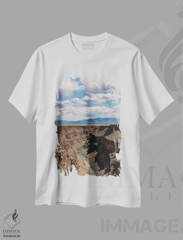 تیشرت سفید طرح دار – تیشرت طبیعت ,دره آنتلوپ زیبا اثر ملانی ویولا فروشگاه ایماژ