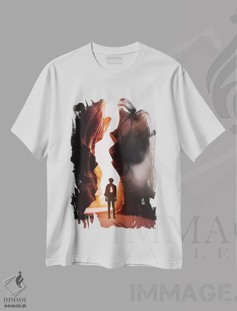 تیشرت سفید طرح دار ژرفای دره، هنر فاخر معاصر اثر کدی دی لانگ | فروشگاه ایماژ