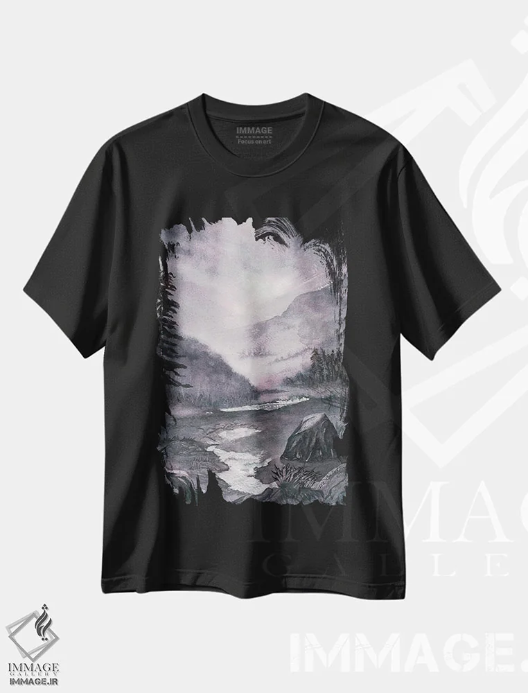تیشرت مشکی طرح دار نور خنک در دره، هنر فاخر معاصر اثر کدی دی لانگ | فروشگاه ایماژ