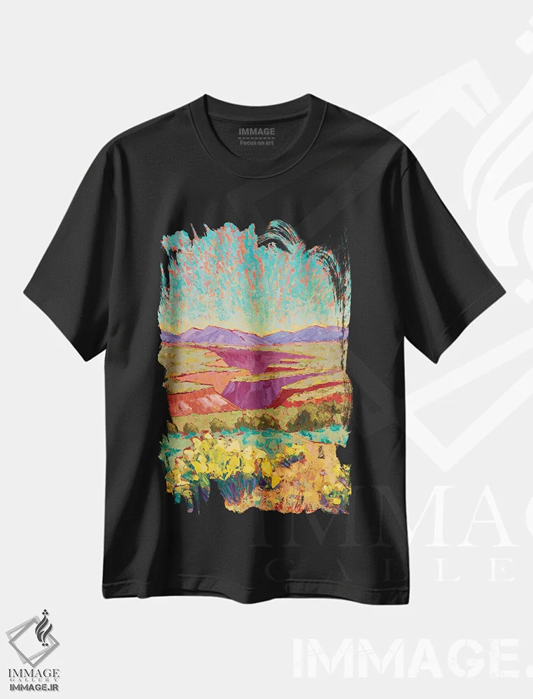 تیشرت مشکی طرح دار غروب دره ۲، دکور معاصر اثر لیز کاوینگتون | فروشگاه ایماژ
