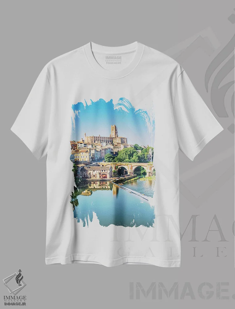 تیشرت سفید طرح دار شهر آلبی، مدیوم اثر مانجیک پیکچرز | فروشگاه ایماژ