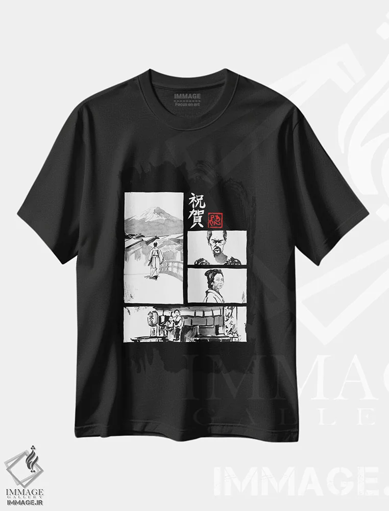 تیشرت مشکی طرح دار مانگای سیاه، هنر فاخر معاصر اثر پِشان | فروشگاه ایماژ