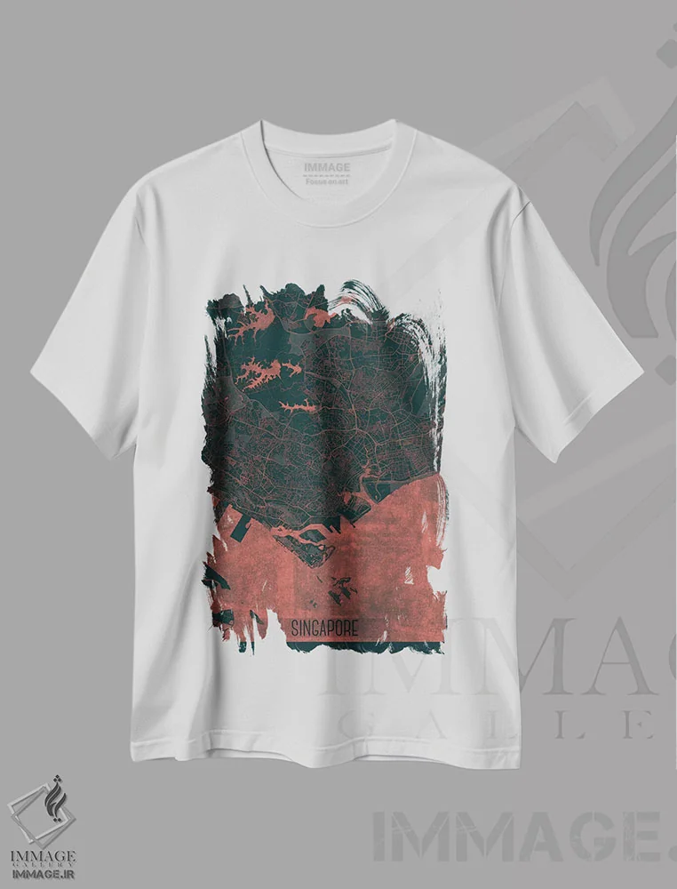 تیشرت طرح گرافیکی ,نقشه سنگاپور اثر مایکل تامپست