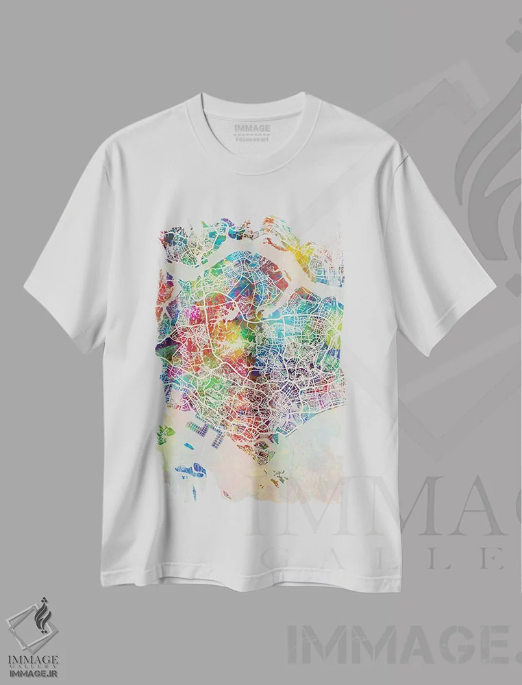 تیشرت طرح دار نقشهٔ سنگاپور، هنر دیجیتال اثر آیشه دنیز آکِرمان | فروشگاه ایماژ