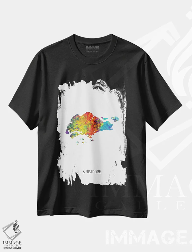 تیشرت مشکی طرح دار – تیشرت شهری ,نقشه سنگاپور اثر مایکل تامپست فروشگاه ایماژ