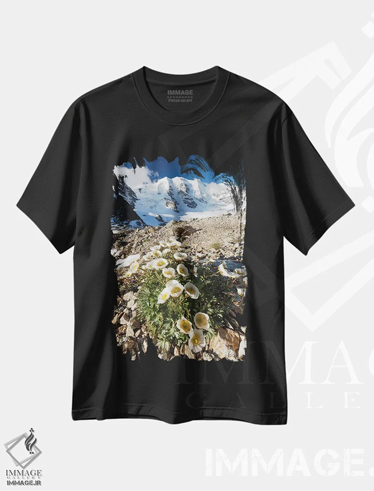تیشرت مشکی طرح دار رشته کوه ماترهورن، دکور معاصر اثر ناتالی مک | فروشگاه ایماژ