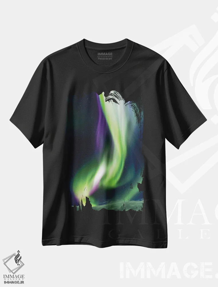 تیشرت مشکی طرح دار شفق شمالی، دکوراسیون جایگزین اثر ایوان رودز | فروشگاه ایماژ