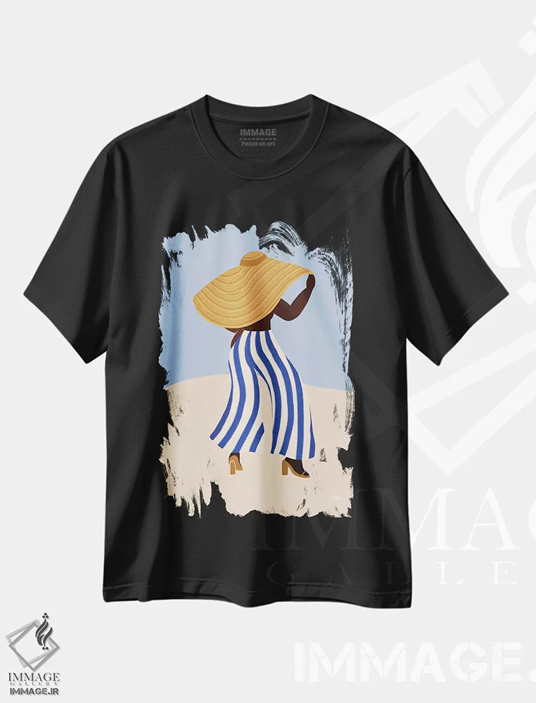 تیشرت مشکی طرح دار کلاه آفتابی I، هنر آمریکایی آفریقایی تبار اثر بریا نیکول | فروشگاه ایماژ تیشرت طرح دار کلاه آفتابی I اثر بریا نیکول