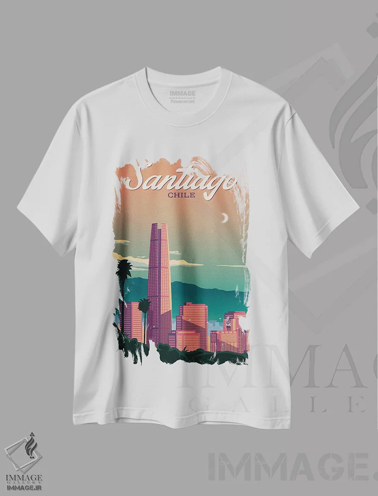 تیشرت طرح دار نقشهٔ سانتیاگو، شیلی، هنر دیجیتال اثر آیشه دنیز آکِرمان | فروشگاه ایماژ