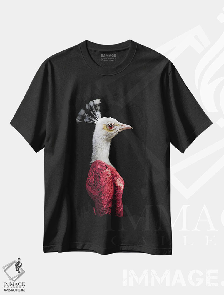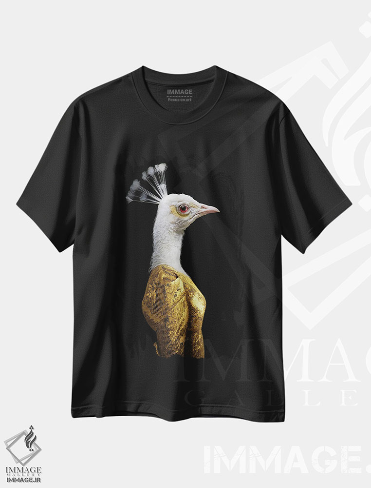 تیشرت مشکی طرح دار – تیشرت هنری ,طاووس مغرور اثر لیزا وایت هاوس فروشگاه ایماژ