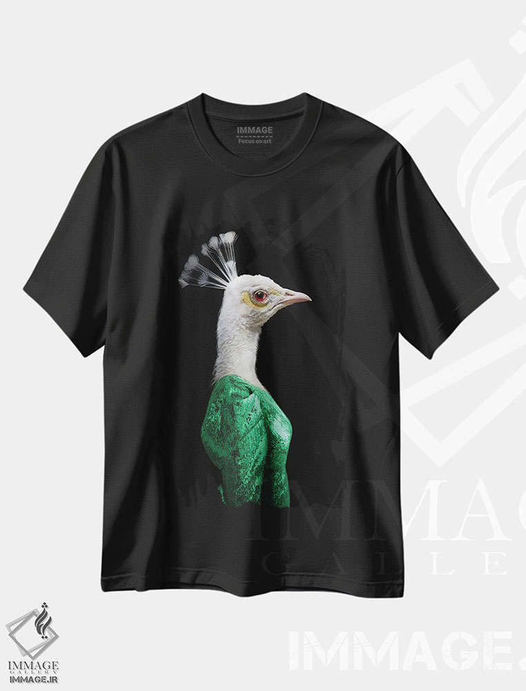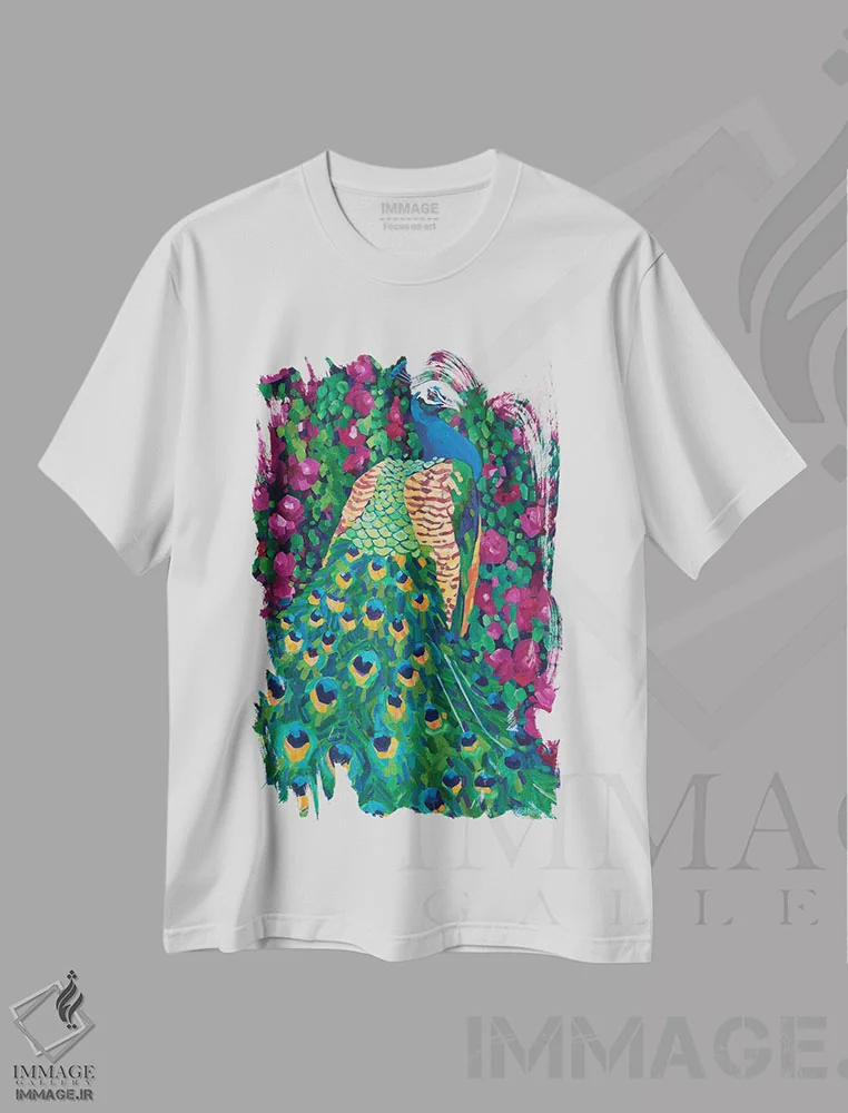 تیشرت طرح دار طاووس مغرور و نجیب، هنر دیجیتال اثر فایو بای فایو کالکتیو | فروشگاه ایماژ