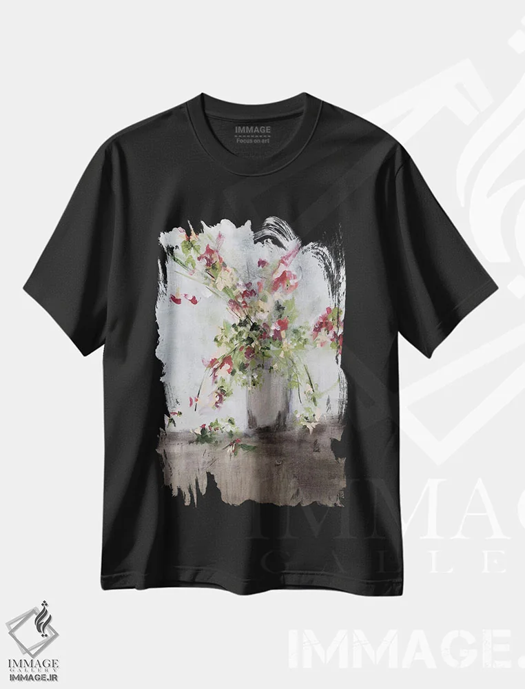 تیشرت مشکی طرح دار – تیشرت فانتزی ,دسته گل کوزه زنجبیلی پانزدهم آبرنگ اثر میشل موسپنس فروشگاه ایماژ