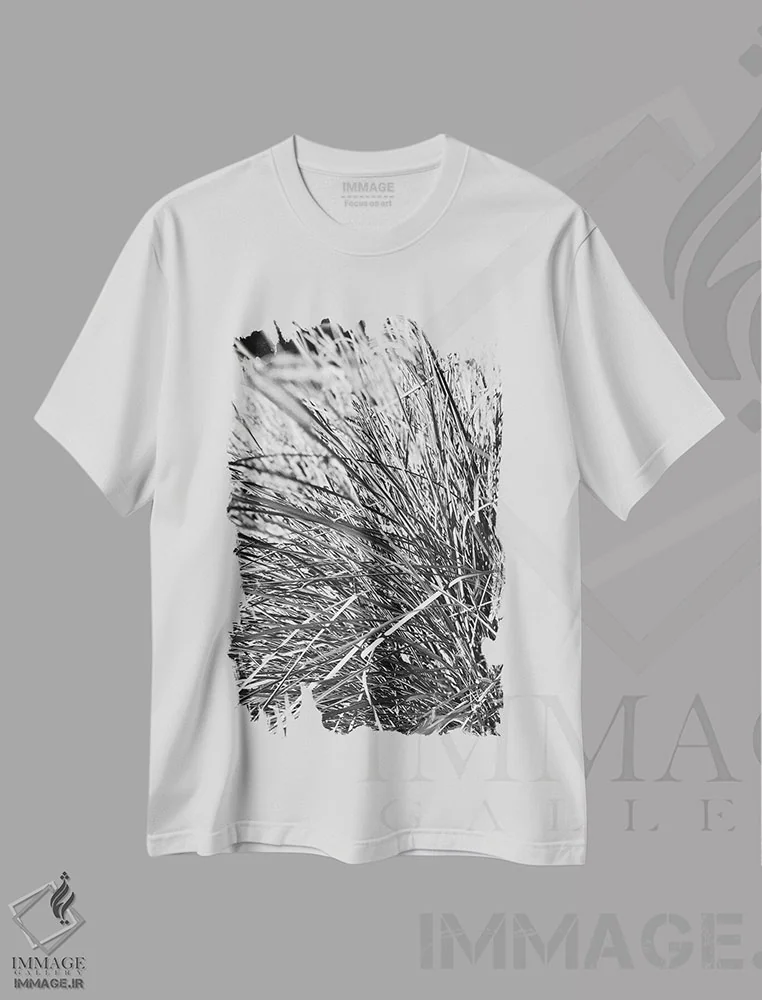 تیشرت سفید طرح دار – تیشرت طبیعت ,توهم هنری با علف پامپاس اثر ملانی ویولا فروشگاه ایماژ