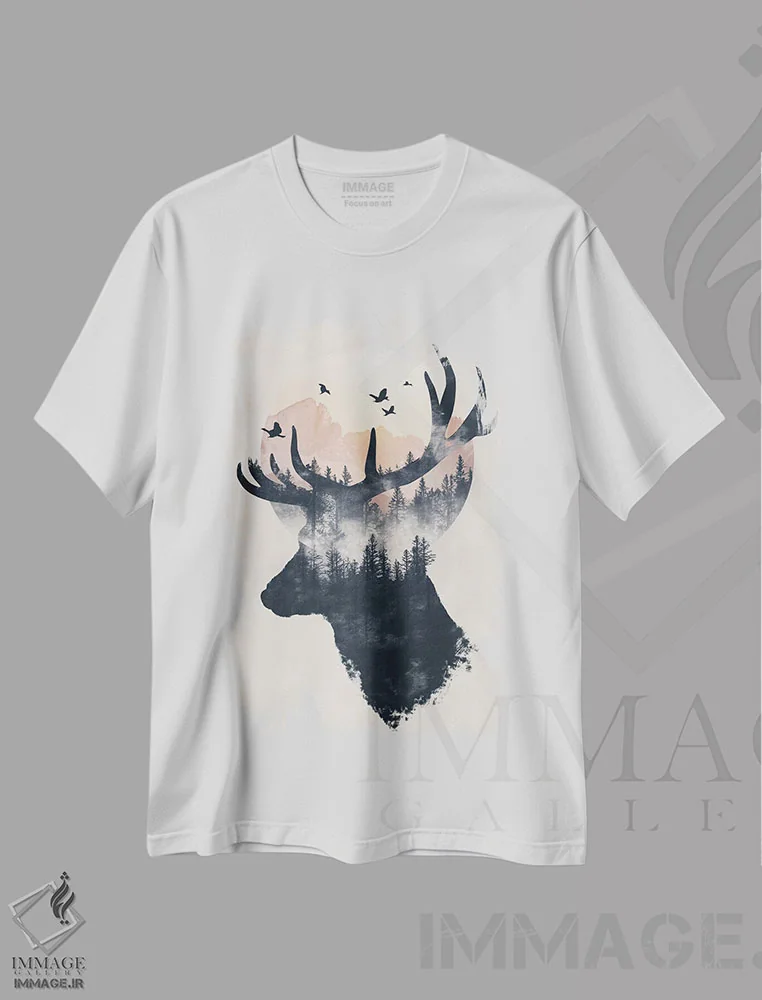 تیشرت سفید طرح دار گوزن دابل اکسپوژر، تزئینی اثر دورو آرت | فروشگاه ایماژ