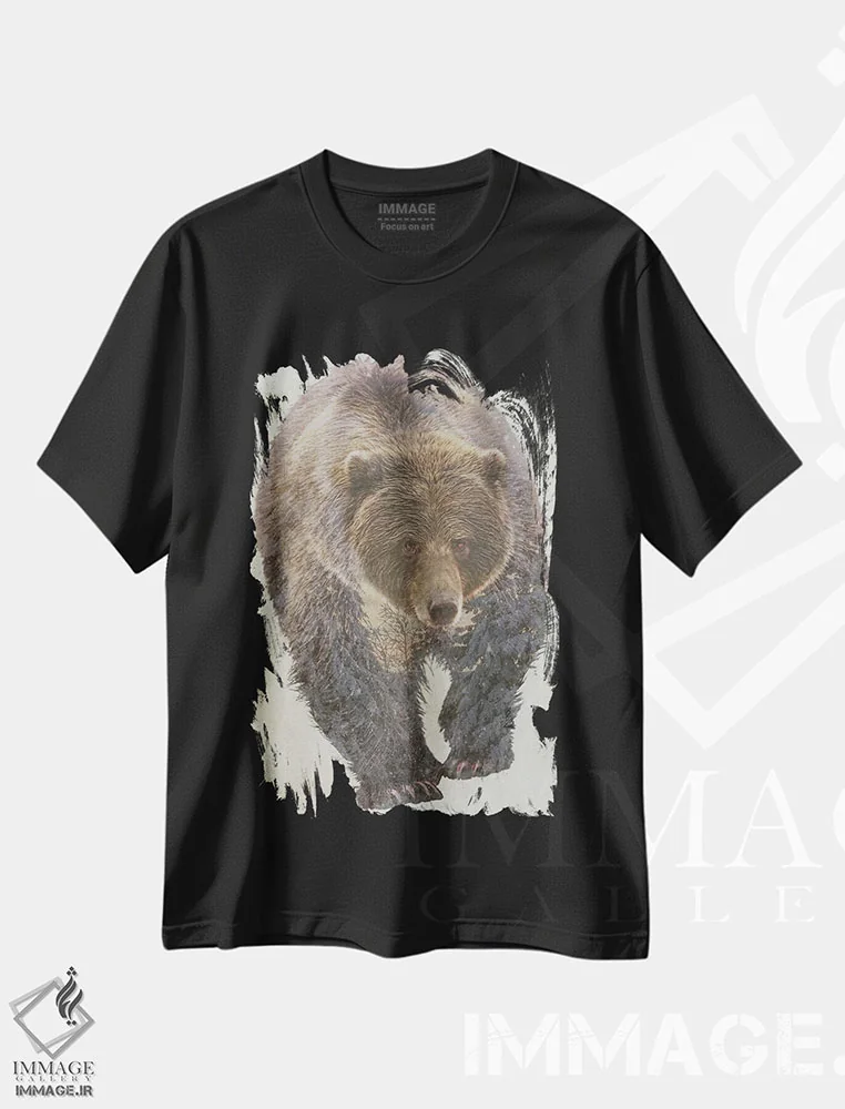 تیشرت مشکی طرح دار خرس دابل اکسپوژر، تزئینی اثر دورو آرت | فروشگاه ایماژ