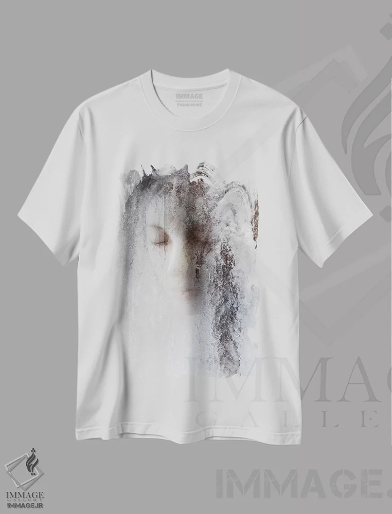 تیشرت طرح دار بانوی صدف، عکاسی دو نوردهی اثر تاتیانا آم رِین | فروشگاه ایماژ