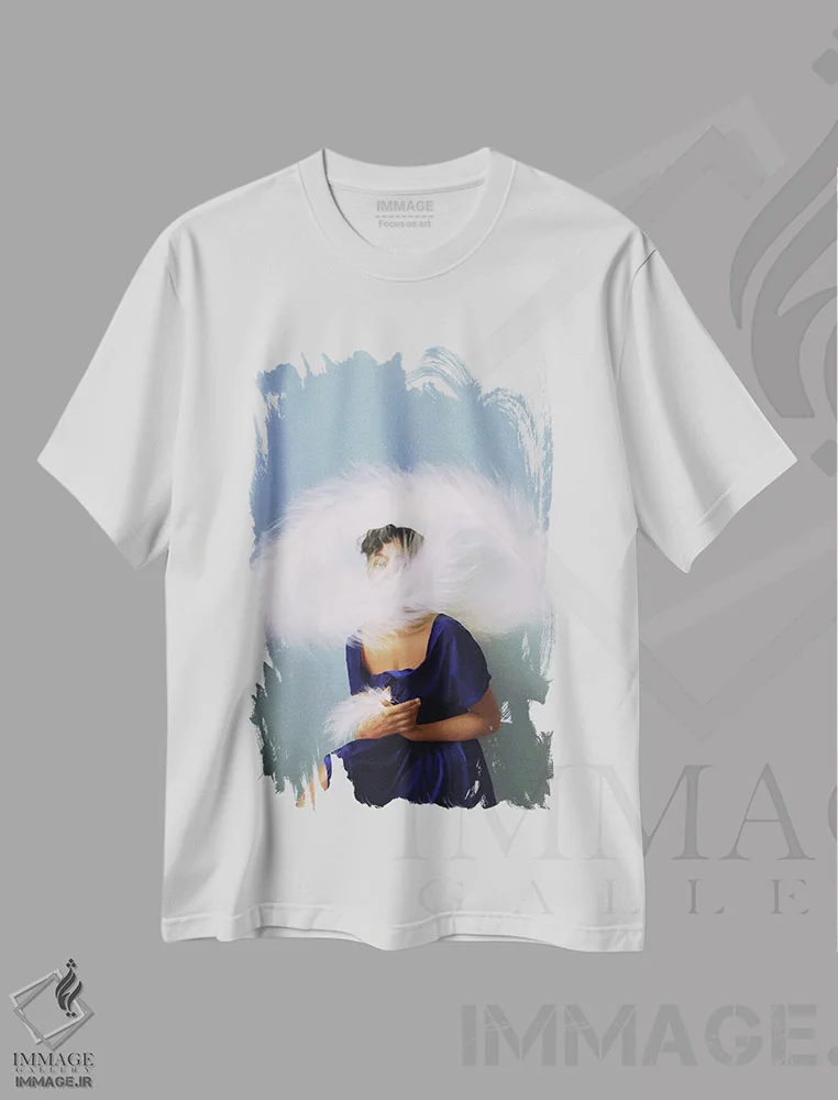 تیشرت سفید طرح دار – تیشرت هنری ,"بانوی غروب" اثر هوبوپیبا فروشگاه ایماژ