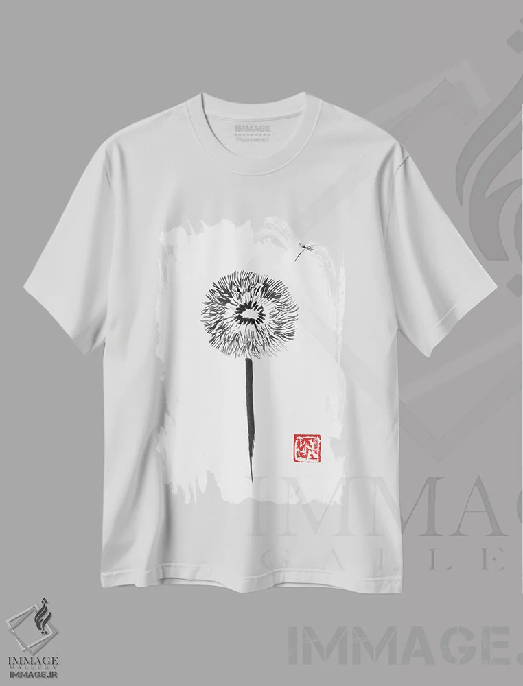 تیشرت سفید طرح دار قاصدک تابستانی ۲، مدیوم اثر بثانی یانگ | فروشگاه ایماژ