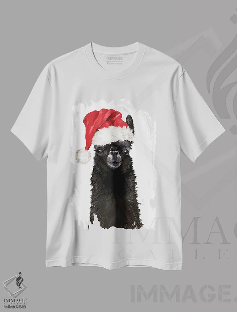تیشرت سفید طرح دار لامای سیاه کریسمسی، حیوانات کریسمسی اثر بگ نوز ورک | فروشگاه ایماژ
