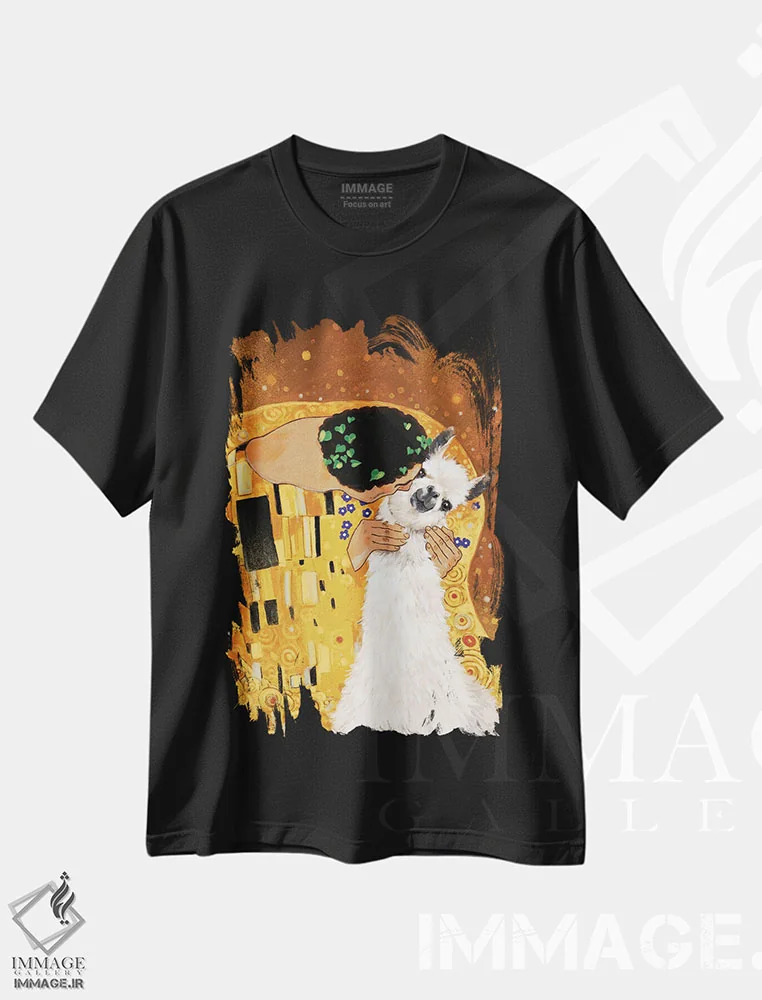 تیشرت مشکی طرح دار بوسه لاما، هنر دیجیتال اثر بگ نوز ورک | فروشگاه ایماژ