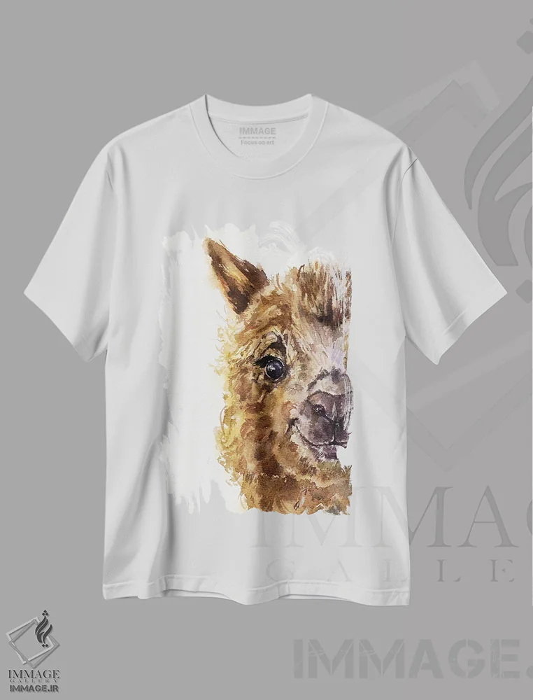 تیشرت سفید طرح دار – تیشرت حیوانات ,پرتره لاما اثر ماری الین کوسون فروشگاه ایماژ