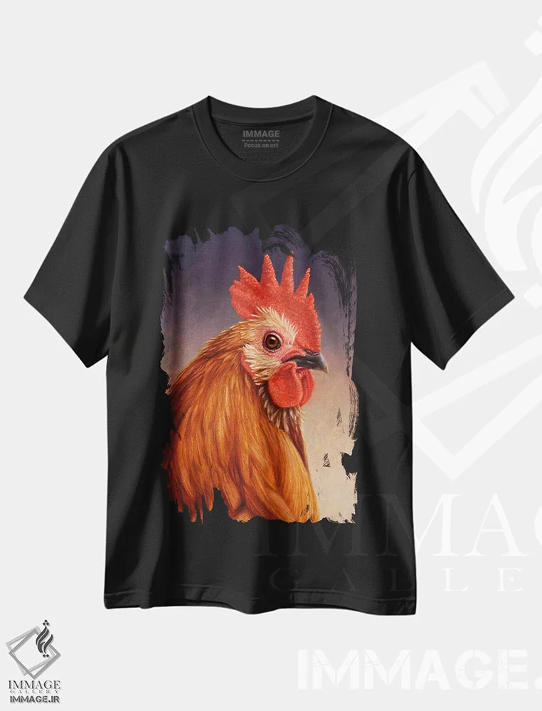 تیشرت مشکی طرح دار – تیشرت حیوانات ,"خروس" اثر میخائیل ودرنیکوف فروشگاه ایماژ